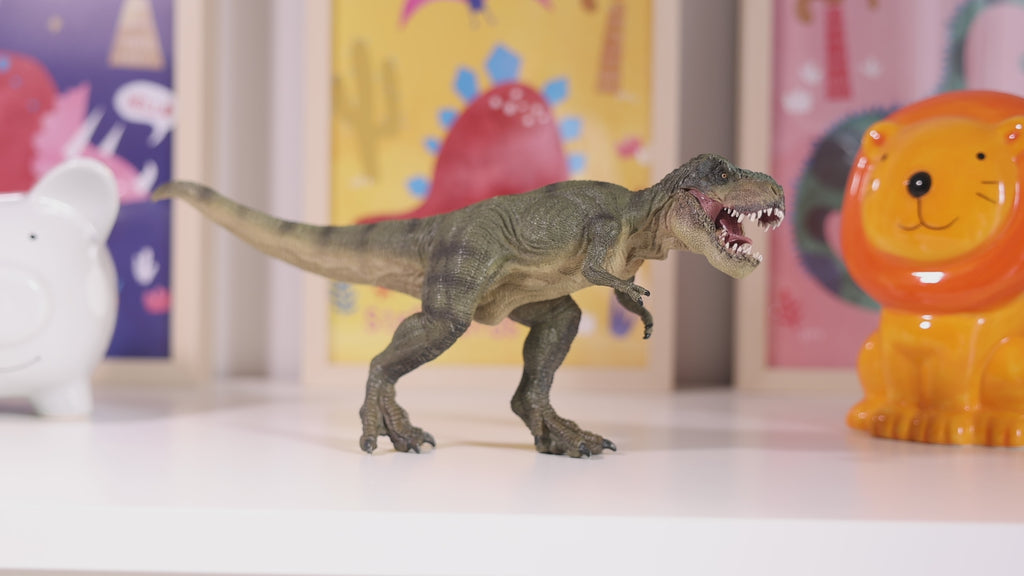Die Papo T-Rex -Figur bildet die ganze Kraft dieses legendären Dinosauriers mit beeindruckendem Realismus ab: seine detaillierte Muskulatur, seine dynamische Haltung und sein beweglicher Kiefer, der seine beeindruckenden Zähne hervorhebt. Ein Muss, um Ihre Dinosaurier-Sammlung zu bereichern oder die Neugier von Paläontologie-Enthusiasten zu wecken.